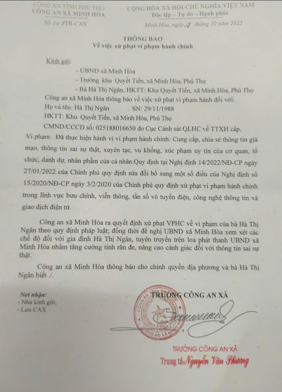 THÔNG BÁO Về việc xử phạt vi phạm hành chính